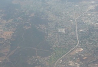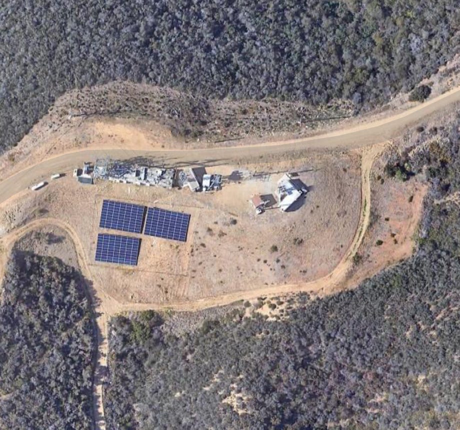 U4EA Ranch is located about equidistant between Los Angeles and Santa Barbara, along Southern California’s biotech corridor. The photos below are from a commercial airplane on approach to LAX, north is right. Antenna facilities are on two adjacent peaks along the north ridge.
